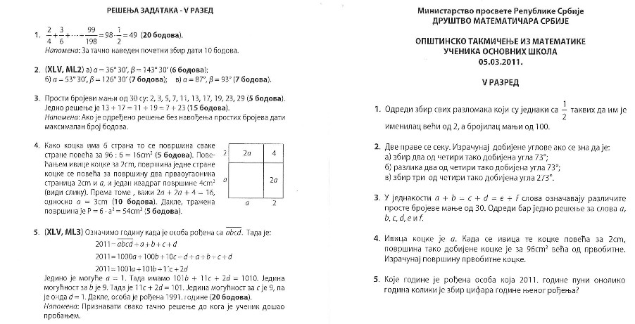 Задаци и решења са Општинског такмичења из математике одржаног 05.03.2011.г.